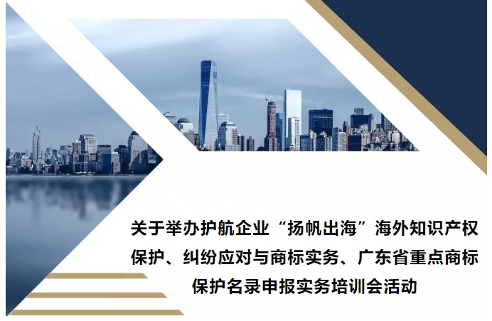• 關于舉辦護航企業(yè)“揚帆出?!焙M庵R產權保護、糾紛應對與商標實務、廣東省重點商標保護名錄申報實務培訓會活動
